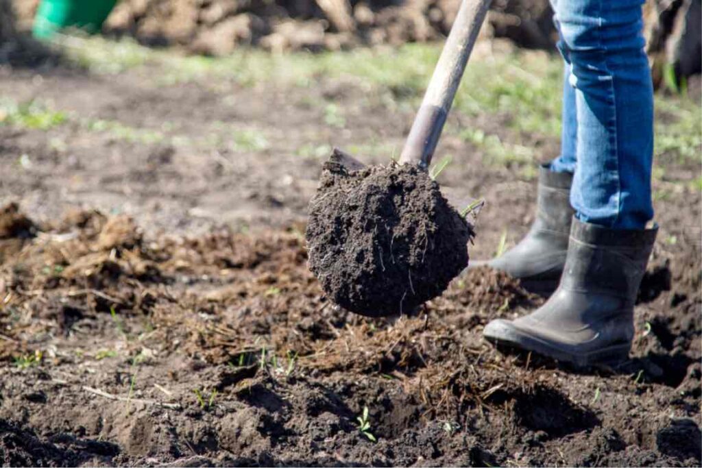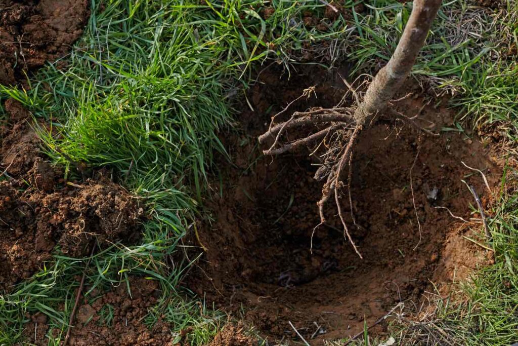 Dig a hole deep enough to fit in all the tree’s roots. Make sure to keep the soil close by as you’ll need it to refill the hole in a moment.